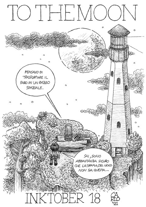 Giorno 18: "Moon". "Uno di questi giorni, Alice... Boom! Zoom! ...ti spedisco sulla Luna!" @freebird_games #TotheMoon #inktober #inktober2021