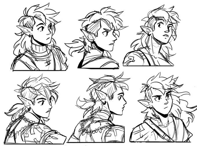 Some sketches of Link with an undercut because after all why shouldn't I 🤌 I'll probs colour these~ inspired by my own hair cut ☺️ #totklink #link #legendofzelda