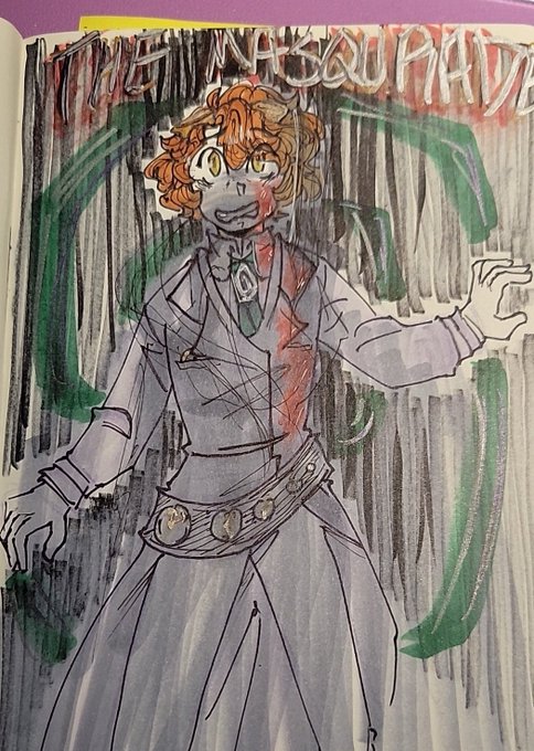 Day 6 of #dsmptober tales of the smp So I choose my fave tale : the masquerade I really like the idea I had with this so might digitize it another time #dreamsmp #talesofthesmp #totsmp #karljacobs #karljacobsfanart #inktober