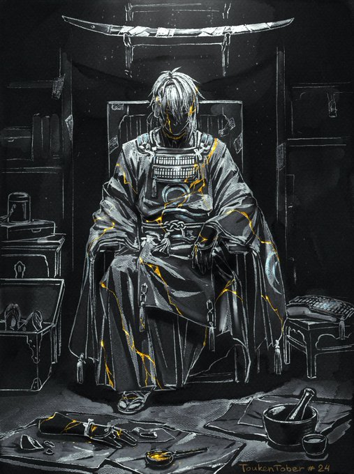 24. Broken In dark cellar of certain Honmaru.. - If I put all the pieces together, will he wake up? [Because I really love kintsugi and this. Glitter. Pen😩] #Toukentober