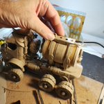 Cartonario Machines: Girl's Squad Concept illustration and vehicle model built from scratch with cardboard from pizza boxes (caja de pizza, lomito, tequeño, hamburguesa, empanadas, medialunas). #concept #illustration #papercraft #cardboard #toys #cyberpunk #imakemyowntoys
