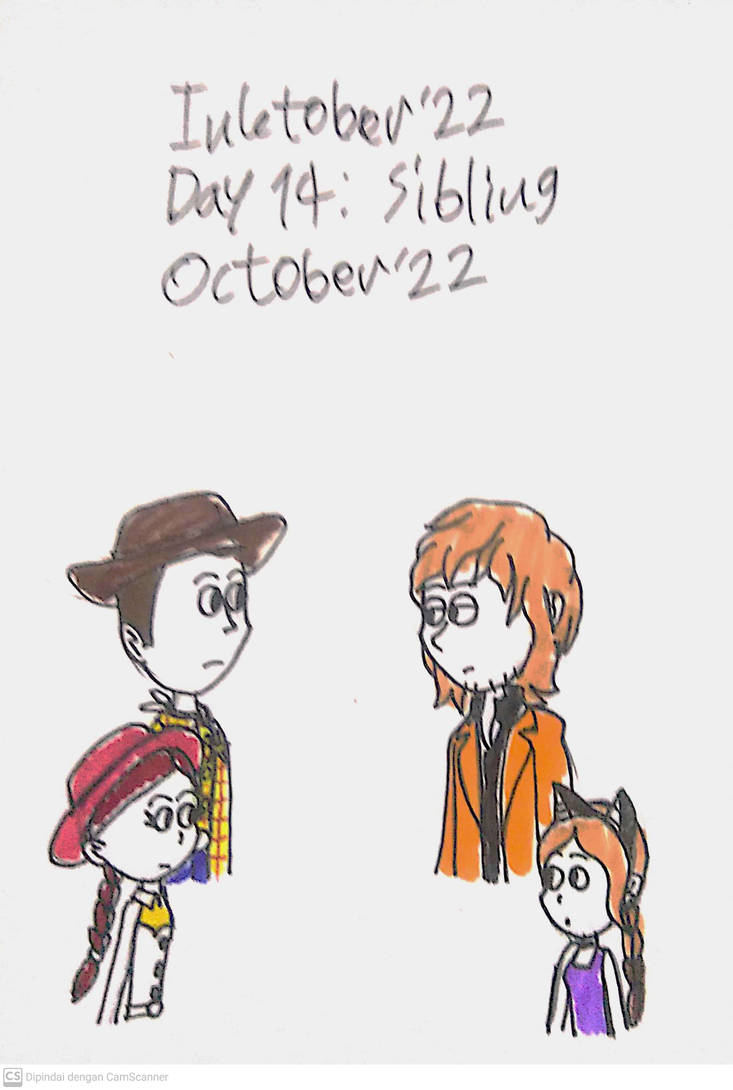 Woody and Jessie meet Wilbur, Flynna's Big brother. Woody and Jessie, Wilbur and Flynna are sibling. #toystory #toystoryfanart #toystoryoc #toystorygreatseries #inktober #inktober2022 #tcinktober2022