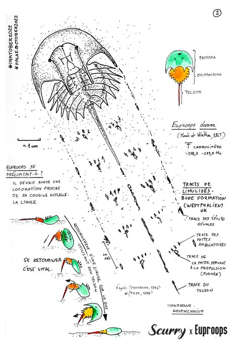 Day 2 - Scurry - #inktober #inktober2022 x Euproops #palaeoctober2022 #palaeoctober #sciart #paleontology #locomotion #tracefossils