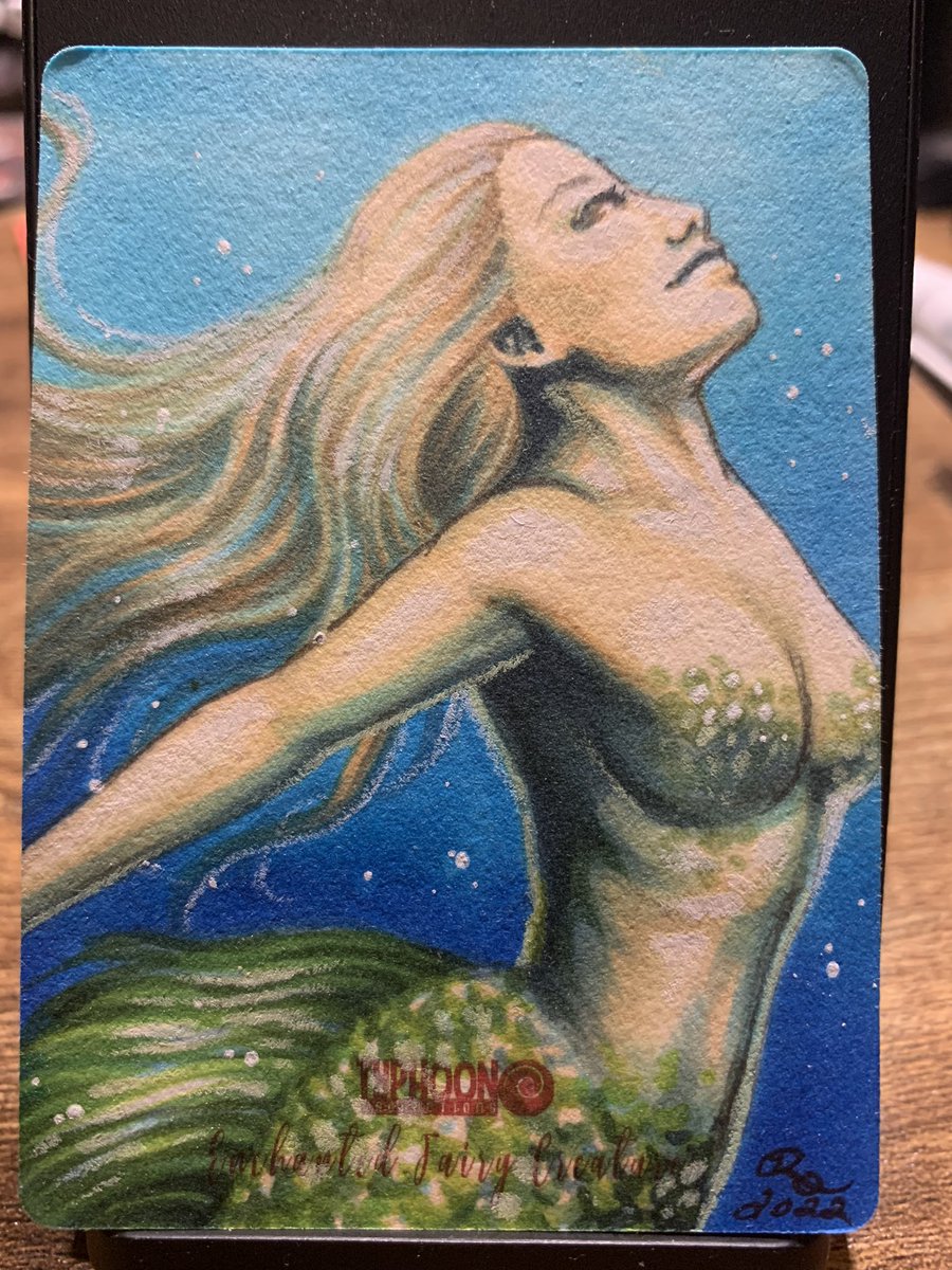 Something something #mermay #sketchcard #tradingcard for @ #TyphoonProductions in China. Done w/ @CopicOfficialUS on blank sketch cards for the Enchanted #Fairy project this month. Shared w/ permission
