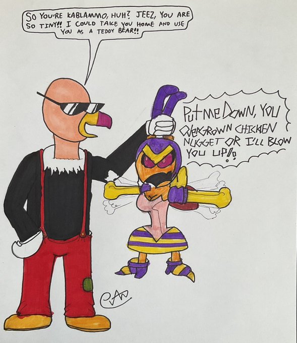Chappy meets Kablammo and decides to insult her height. Kablammo belongs to @putukspitsvenom #art #drawing #artwork #drawingoftheday #oc #originalcharacter #traditionalart #traditionaldrawing #traditionalartwork #fanart #artistsontwitter #artistontwitter