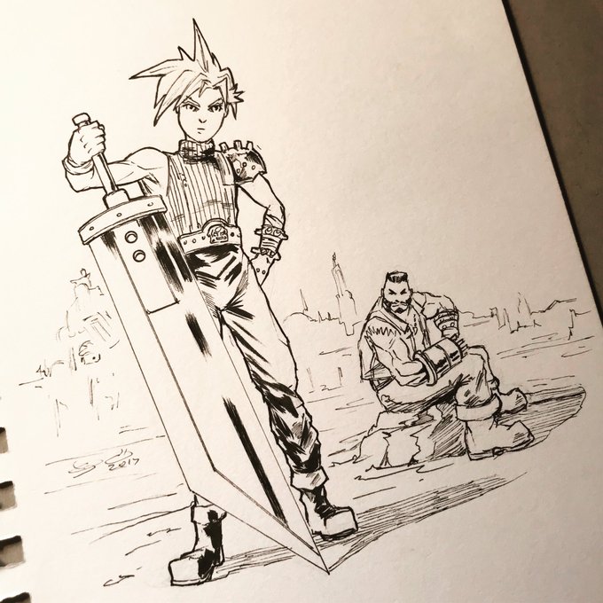 Cloud and Barret SOLD. This little drawing was done in Ink, 5.5” x 8.5” ⚔️ ⚔️⚔️⚔️⚔️ #finalfantasy #cloudandbarret #barret #cloud #draw #inks #lineart #lines #traditionalinks #traditionalart #blackandwhiteart #comicsart #comics #comicartist #artist #art #illustration #illustrator