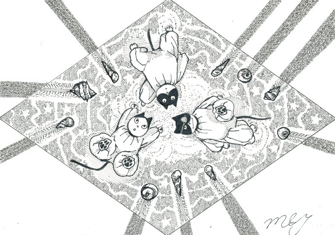 Illustration *19 archipelago* Extra edition The cheerful friends lay around on the beach in the morning sunshine. At this time, they didn't realise the hermit crab was quietly approaching. by Clown and Cheerful friends #traditionally #illustration #art #cat #beach