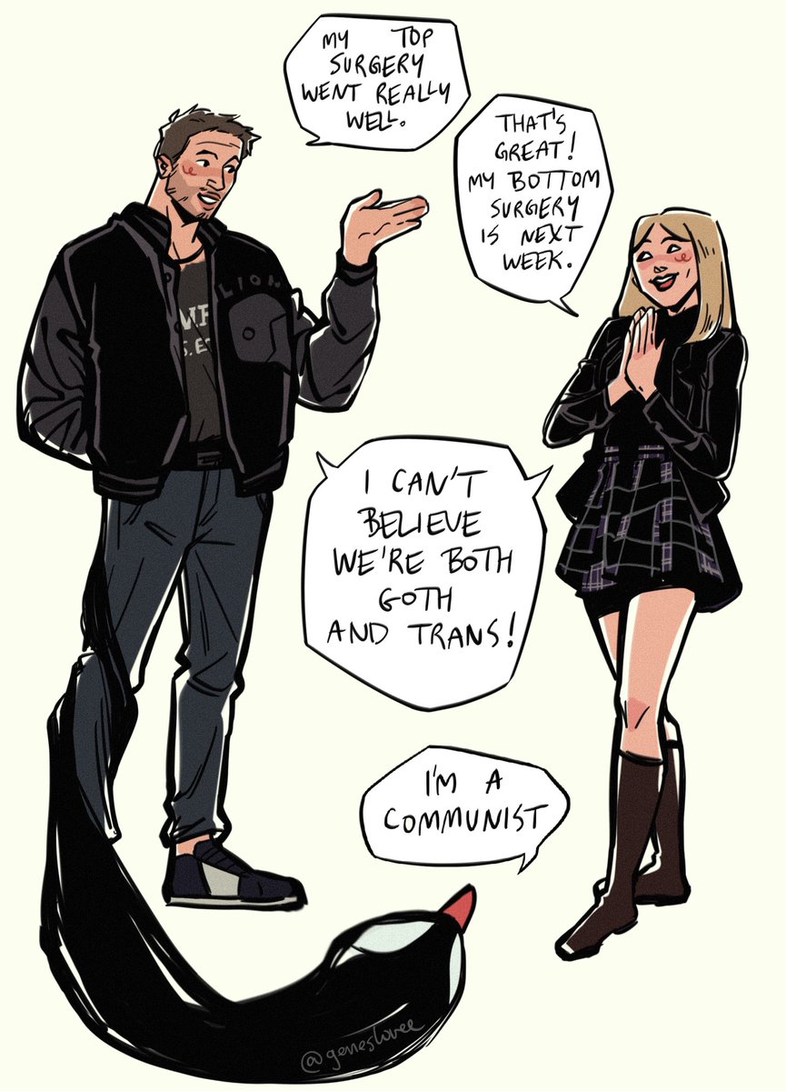 #transartists Every time I post a clearly trans bit of art I lose a chunk of followers and that makes me think I should do it more often