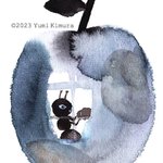りんごの中で「ほう。結構な器ですな。」と言っているアリっぽい生き物。 #animalillustration #transparentwatercolor #animaldrawing #動物イラスト #watercolor