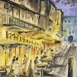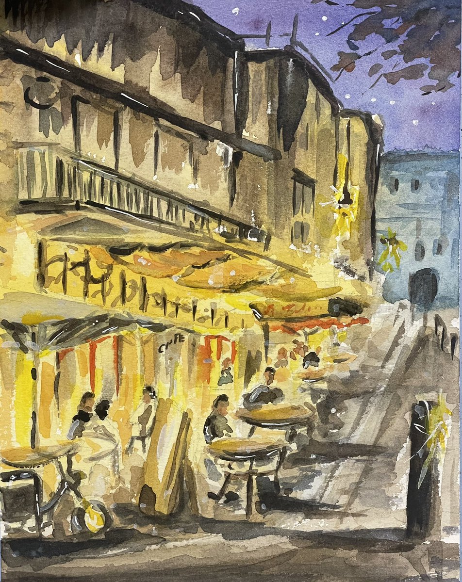 畏れ多くもあの名画を意識して描いてみる😭 #イラスト #お絵描き #絵 #水彩画 #水彩 #透明水彩 #カフェ #夜景 #アート #画家 #illustration #drawing #painting #watercolorpainting #watercolor #transparentwatercolor #cafe #nightview #art #painter