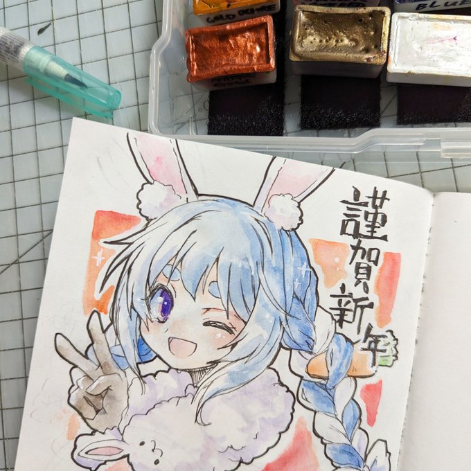 One of the goals for 2023 is to restart my visual diary project! I have stocked up so many #travelersnotebook that I should make good use of them. #djmikanart #usadapekora #ぺこらーと #visualdiary #watercolor #wip #illustration