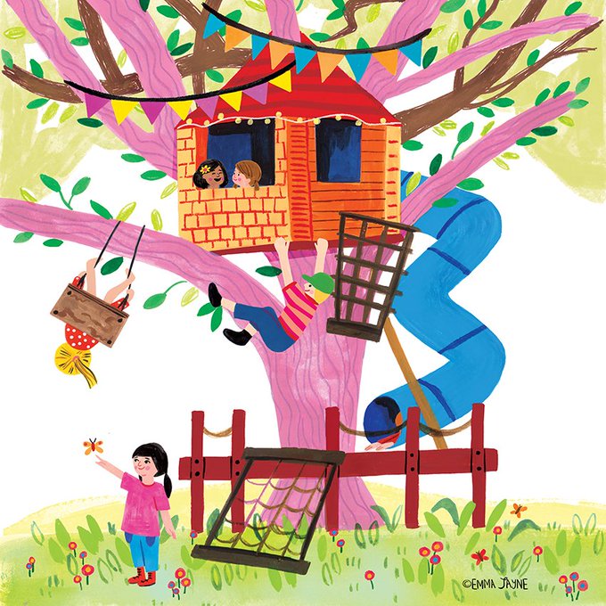 I always wanted one of these in my garden as a child. Children playing at the tree house. #kidlitart #treehouse #illustrator Happy Friday!