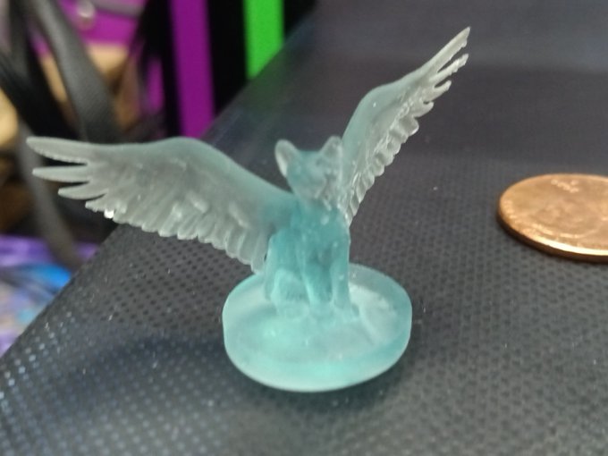 A #tressym from #dungeonsanddragons (i think from there) and its even in #dnd scale too as you can see from the penny. Basically a housecat with wings in this case. My first D&D style model this small. I'm proud! #dndart #dndminis #3Dprinting #3dprinted