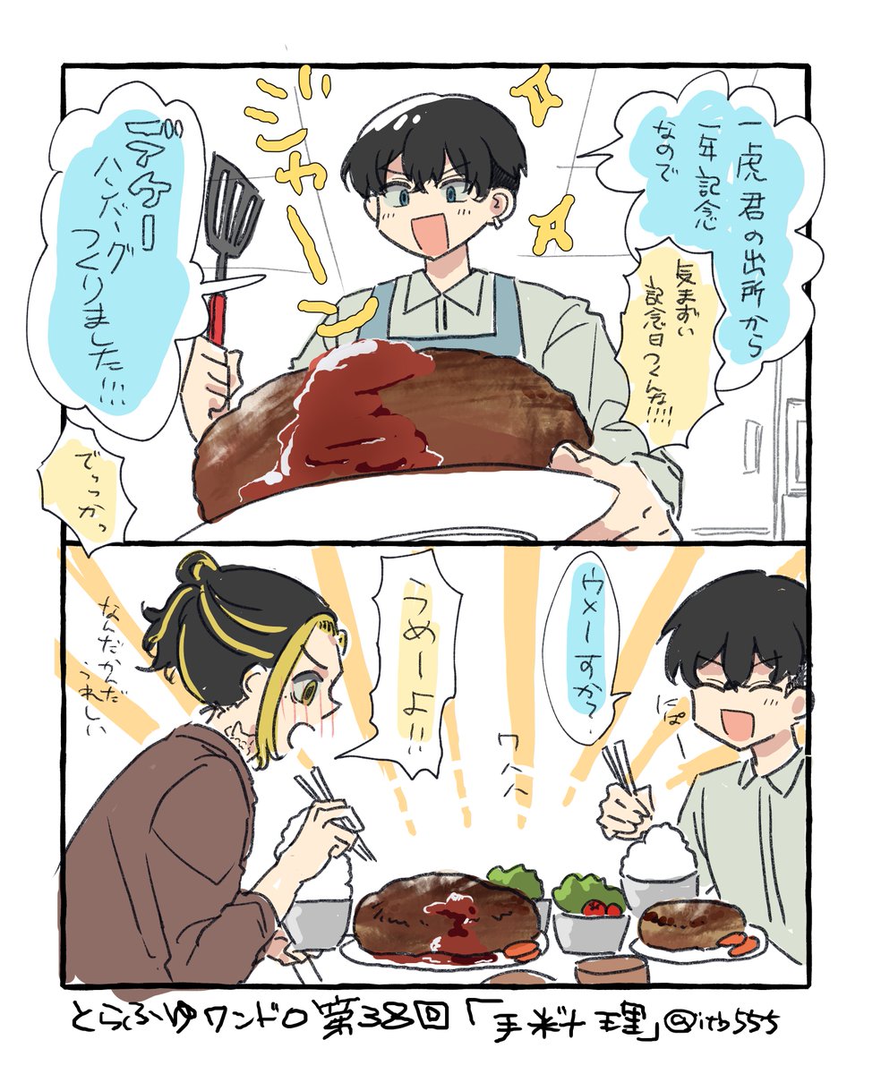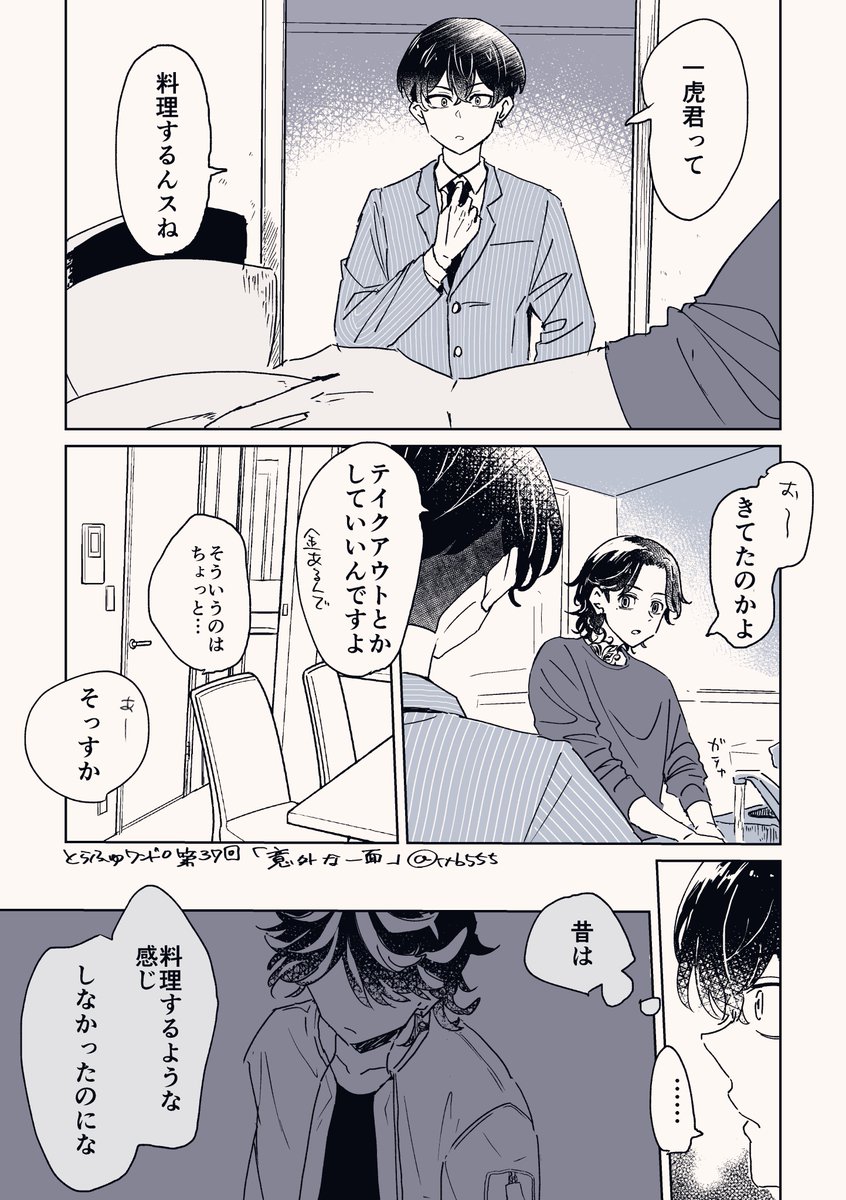 とらふゆワンドロ 過去お題 37回【意外な一面】9軸 めっちゃ時間すぎた 38回【手料理】22軸 1時間と10分!! #trfy_1dr1wr @trfy_1dr1wr 結構前に描いてて上げるタイミングを逃しまくってたけど…50回目前にかこつけて出しといちゃお的な…ねっ!