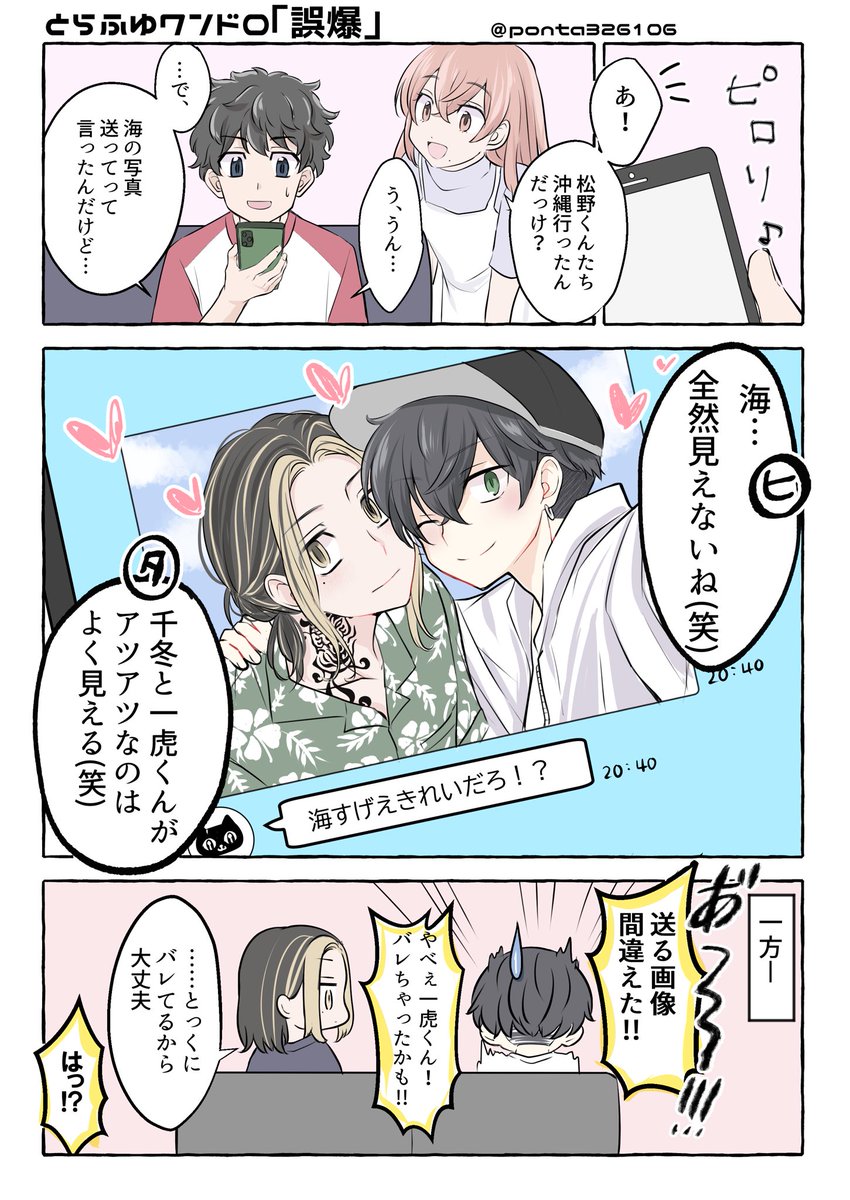 とらふゆワンドロ お題「誤爆」+2h 第50回おめでとうございます🎶いつも楽しませていただいています🥰 ⚠️🎋🐥出てます 周りに付き合ってるのとっくにバレてるのに❄️は隠し通せてると思い込んでる(笑) @trfy_1dr1wr #trfy_1dr1wr