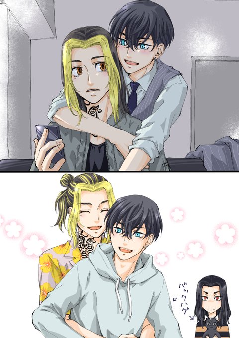 とらふゆワンドロ お題【バックハグ】遅刻&+半日くらい😂 9軸酔っ払い❄️からのバックハグと最終軸🐯からのらぶらぶバックハグ(両方からのが描きたくて…) @trfy_1dr1wr #trfy_1dr1wr