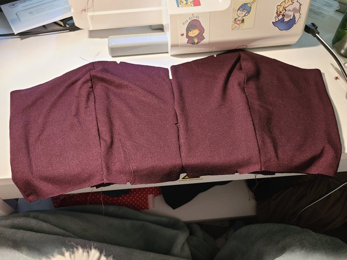 Only took me way too long to get the band around the top right and I'm finally happy with it. Waistband has also been attached but that was after I took the picture. #sewing #cosplay #Commission #trucywright #AceAttorney twitter.com/delinquiltin…