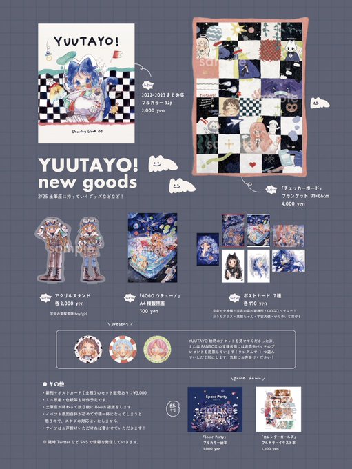 【お品書き】 2/25(土)開催!土筆座2023のお品書きです🐾 新作グッズとして、キャンバスプリントとアクリルスタンドを販売します。アクスタ初めて作ったんですがいい感じです! 是非遊びに来てください〜 #tsukushiza