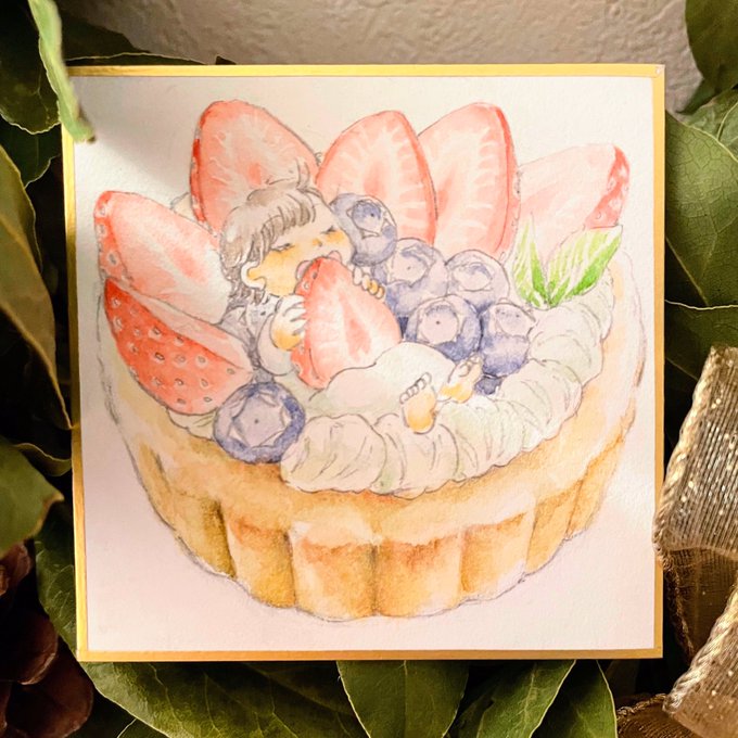 #tsukushiza #tsukushiza_work 土筆座にお持ちするミニ色紙20 フルーツタルトちゃん #art #illustration #watercolor #水彩 #イラスト