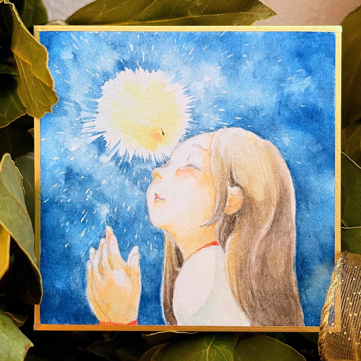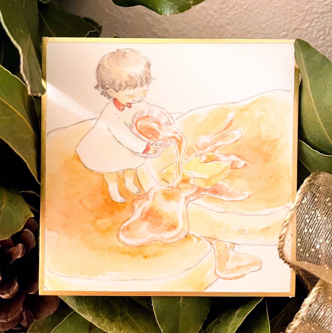 #tsukushiza #tsukushiza_work 土筆座にお持ちするミニ色紙18 ホットケーキちゃん #art #illustration #watercolor #水彩 #イラスト