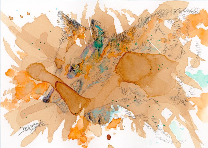 @tsukushiso 🚩2/25 土筆座2023 【No.18】吹上ホール(名古屋市千種区) 新作「Coffee shadow Fox -SAME」 コーヒー×透明水彩 原画を持っていきます🦊 #tsukushiza_work #tsukushiza @tsukushiso #watercolor #透明水彩 #fox #キツネ twitter.com/mnyk_canis/sta…