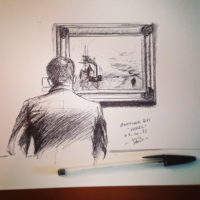 Day 03 for #Inktober with #Vessel and a #BloodyBigShip with a #Painting from #Turner #TheFightingTemeraire #Inktober2021 #Biro