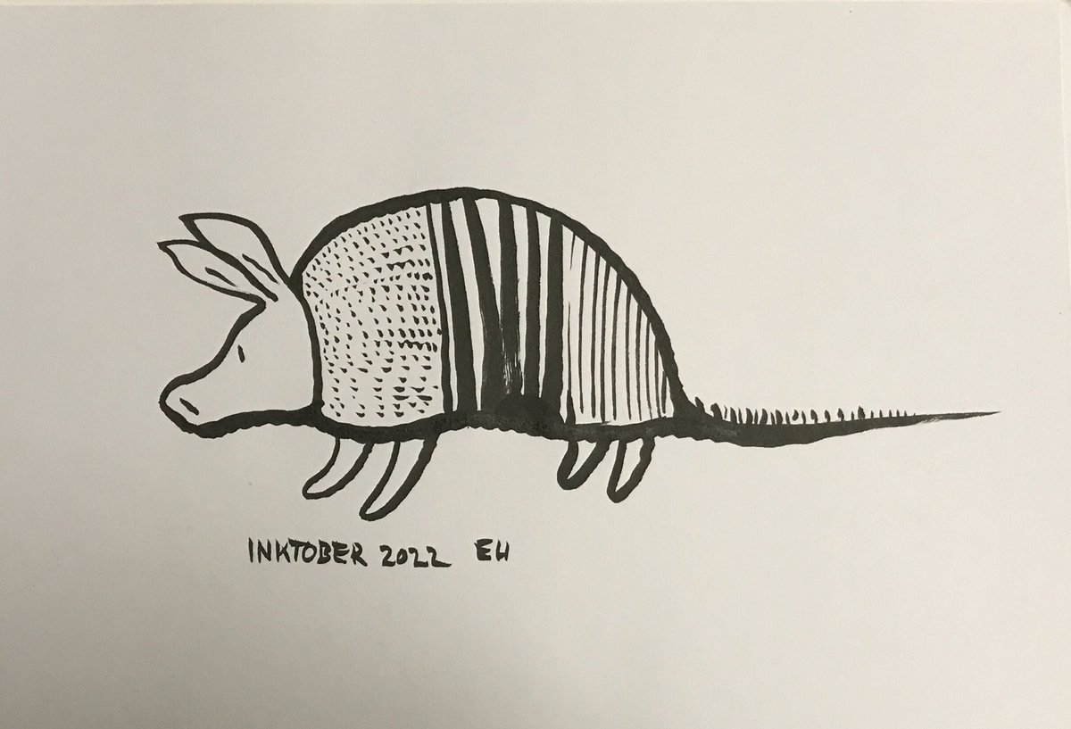 #Inktober Day 15 "Armadillo" Näyttää simppeliltä mutta olikin aika töisevä. #inktober2022 #sketch #ink #tussi #blackandwhite #Pentel #brushpen