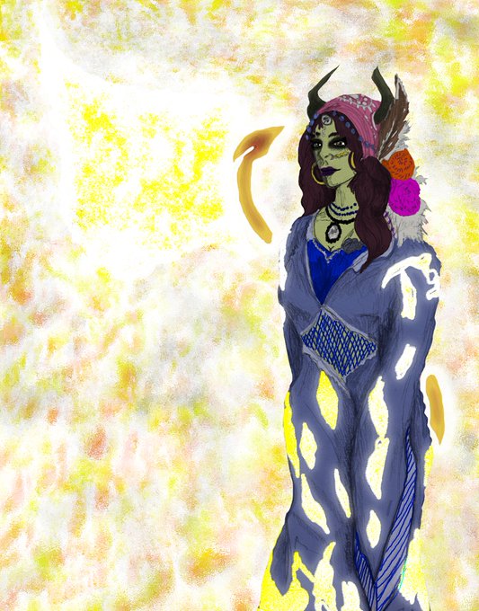 A little #wip shot of this character design for dnd. Got a little ways to go, but I am excited so far. Stay tuned! Oh, and also, she now has a name. But you'll have to wait till she is done to find out! #dndart #artshare #worinprogress #dnd5e #ttrpg #characterdesign #tweetart