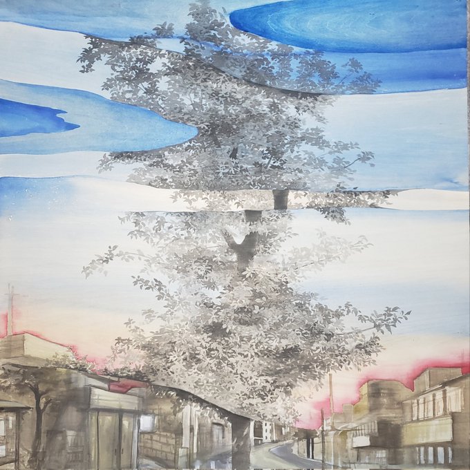 夕暮れの絵、途中。年末のあれこれで、制作の進みが劇的に遅いです。まだまだ道のりは長い··· #絵画制作 #水彩 #墨 #板 #木の絵 #夕暮れ #ブルーモーメント #制作途中 #進捗 #artwork #watercolor #woodpanel #treeart #twilight #bluemoment #workinprogress💪