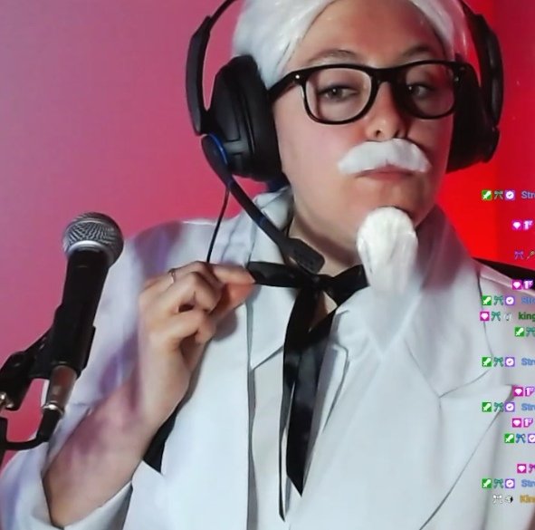 @ariallla is channelling her love for @KFCAustralia by becoming Colonel Sanders on Twitch right now! 🍗 #kfc #kfcsponsor #streaming #cosplay #Twitchanz