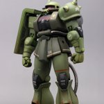 【ゲルググ①】今年最後の完成品、HGゲルググです!個人的な好みでリベットやボルト多め、チッピングとダメージ表現強めで使い古されたエース機っぽい感じにしました。肩はディティールを改造、モノアイとナギナタは蛍光塗料で塗ったので光ります。 #ゲルググ #ガンプラ #twitter模型祭