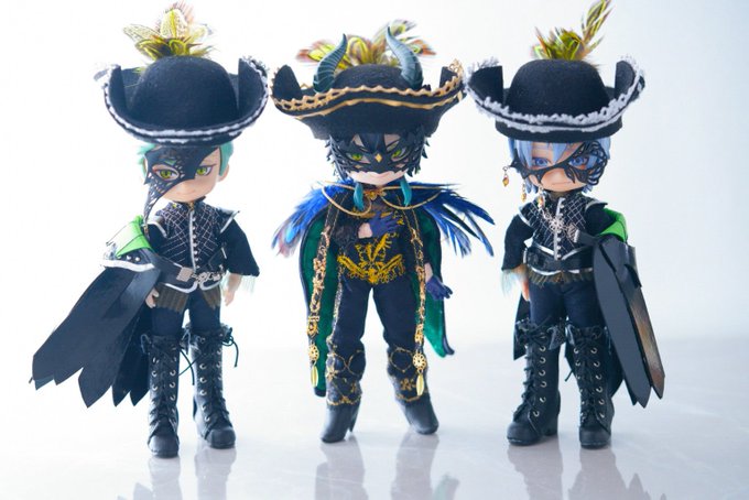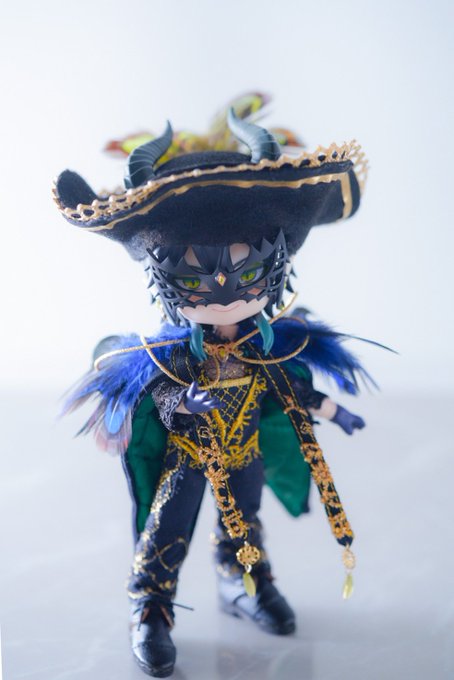 グロリアス・マスカレード ディアソムニア寮 召喚できましたーー🪄˙˚°✰🎭🐲⚔⚡️ 仮面と帽子が大変だったけど推しの推し衣装最高🥳🥳🥳🥳🥳 #twstドール部 #twstねんどろカスタム