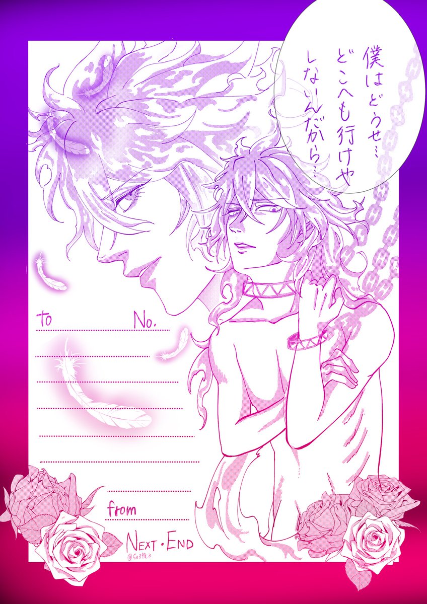 雑然とした線画もグラデーションにするとなんか何となくイイ感じに見えるという…?!そして書くとこ少なっ!!笑 ※1章を読んで描いたものなので続スケモン全体の読後感と合わないかもしれません(爆)← #twstグラデ便箋企画