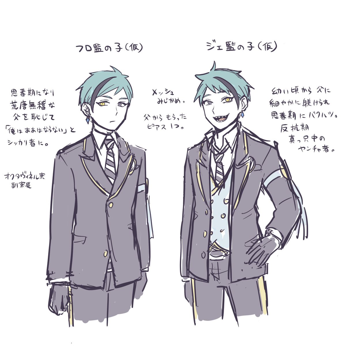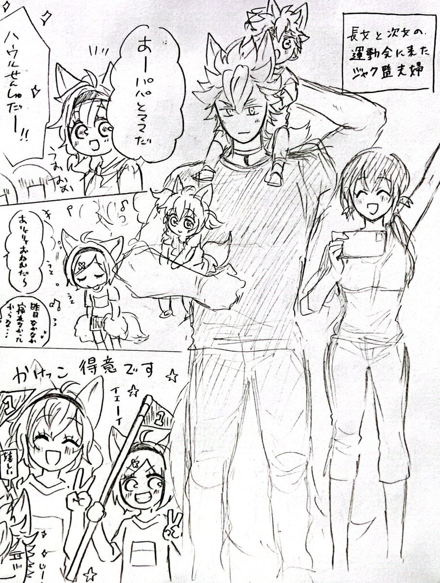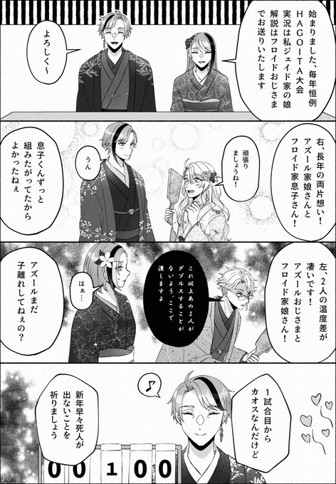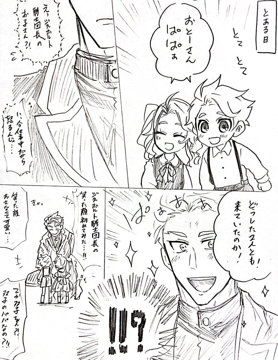 多分これ、かな? フロパパとジェパパで子どもたちの対応が違うやつ #今年も残りわずかなので今年一番伸びた絵を貼る見た絵描きさんも強制でやる #twstプラス #twstファミリープラス