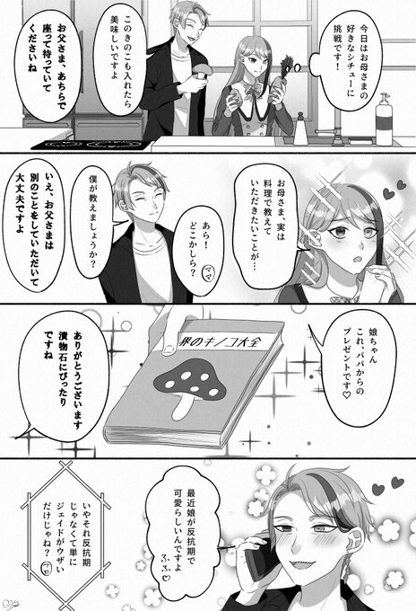 多分これ、かな? フロパパとジェパパで子どもたちの対応が違うやつ #今年も残りわずかなので今年一番伸びた絵を貼る見た絵描きさんも強制でやる #twstプラス #twstファミリープラス