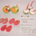 「うまうま もふもふ」 今週も一週間お疲れ様でした! 今日は某ソシャゲの期間限定イベント「熱砂の国のアリアーブ・ナーリヤ」に登場したメニューをいくつか作ってみました🖐 お気に入りはココナッツジュース( ´∀`)ノ #デスクトップアーミー #ミニチュア #twst手芸部