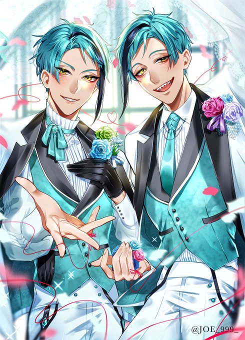 🐬「まぁ、どちらを選んでも後悔させませんけどね」 素敵な企画に参加させて頂きました! (双子にベール捲られたい人この指止まれ) #twst_ウエディング企画 #ツイステファンアート #twstファンアート