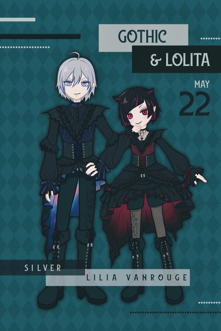 #twst_ゴスロリ企画 リリアとシルバーの紅銀親子で参加させてもらいました🦇⚔️ 今日は世界ゴスの日だそうで…!コウモリモチーフと茨模様を散りばめた衣装にしてみた(4K読み込みする方がいいかも) 本編は波乱だけど、楽しそうな二人がまた見られますように…😌 #twstファンアート