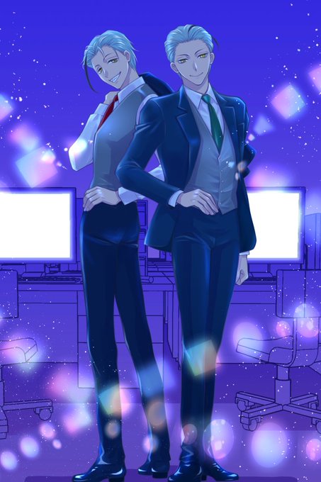 #twst_スーツ企画 #twstファンアート 素敵な企画にリーチ兄弟で参加しました! 普通のサラリーマンのつもりが不穏な商業スパイみたいに…💦 タグから素晴らしいスーツ男子をたくさんご覧になれますー💕