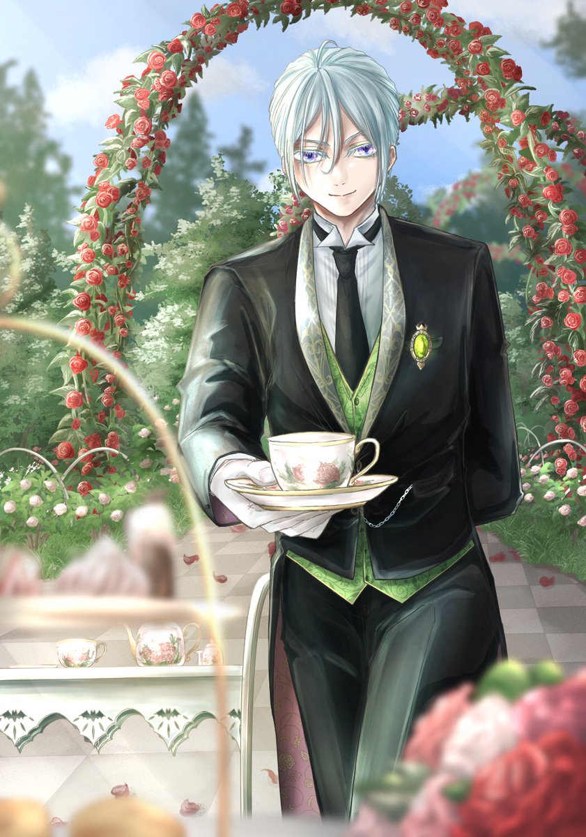 #twst_執事企画 #twstファンアート 純羽ちゃんの素敵な企画に急遽シルバーくんで参加させていただきました!背景ちまちま描きました🌹 タグより他参加者様達の素敵作品も是非見てください✨ あとネップリも登録してもらいます☺️皆様のを刷りにいくのが楽しみ✨