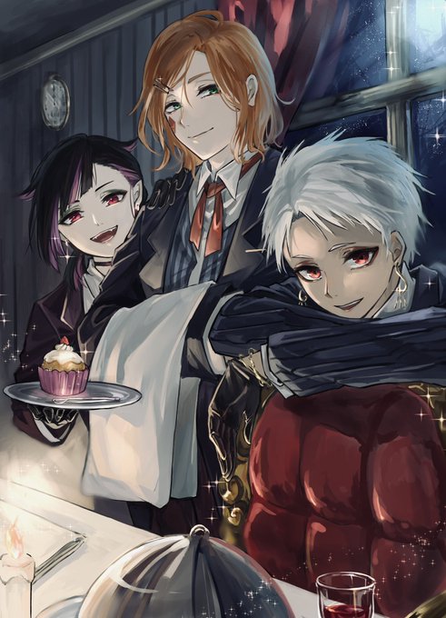 #twst_執事企画最終章 #twstファンアート ご主人様、深海でのティータイムはいかがでしょうか? 純ちゃんの企画にリーチ兄弟で参加させて頂きました!☺ 素敵な企画をありがとうございました‼