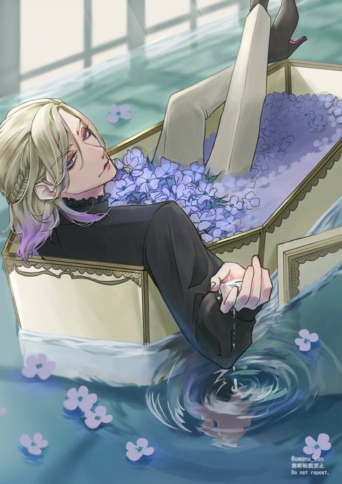 #twst_棺企画 今回も七月さんの素敵な企画に参加させていただきました🙌✨ 👑様をきれいな水と花に囲ませたかった☺ ↑タグより他の皆様の美麗なイラストもご覧ください😊 #twstファンアート