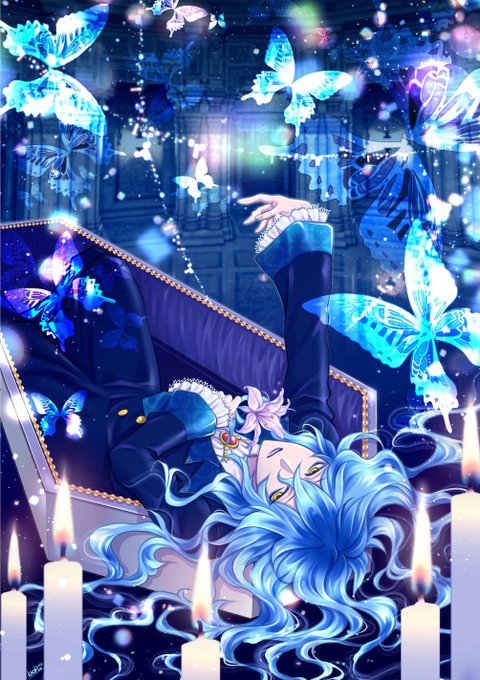 #twst_棺企画 七月さんの素敵な企画に参加させていただきました! 棺にイデア先輩と蝶をつめたのですが はみ出しまくりです! タグから他の皆様の美麗な棺イラストもご覧ください😊 #twstファンアート