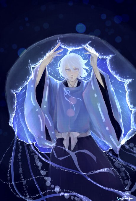 #twst_着物フェスタ2023 海月被衣⚔ 着物フェスタ2023という素晴らしい企画にシルバーくんで参加しました🙇♀️ 上記タグからツイステキャラの素敵な着物姿が見れますよー! #ツイステファンアート