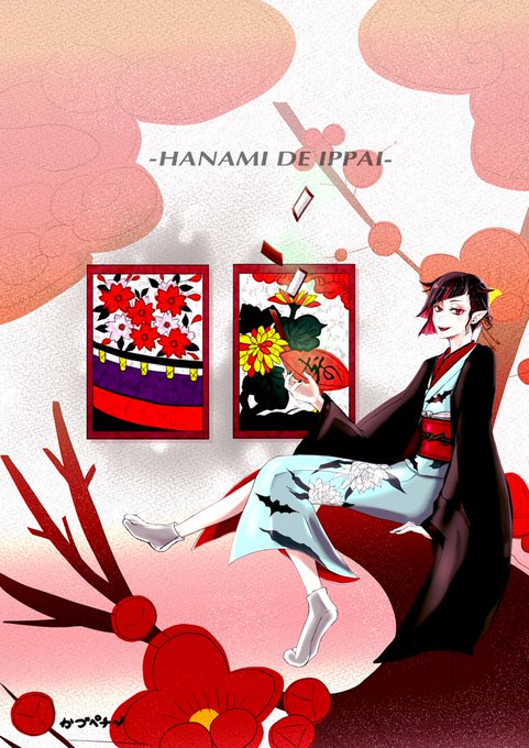 #twst_花札企画_ 海月ちゃんのステキな🎴企画に リリアで参加させて頂きました! ~~花見で一杯🍶❀.*・゚~~ 上記のタグから ステキな作品が見れるのでぜひ✨ ⚠️衣装・髪型 捏造注意 #twstファンアート