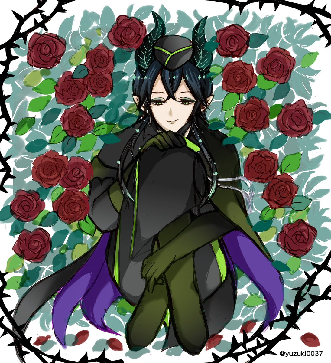 #twst_花満開企画 マレウス/薔薇🌹 素敵な企画に参加させて戴きました🙏✨マレ様は実家に薔薇園があるので、薔薇に囲まれているマレ様を描きたいなという思いから描きました。 「僕のローズガーデンへようこそ」とか言ってもらいたい🥀✨ #twstファンアート