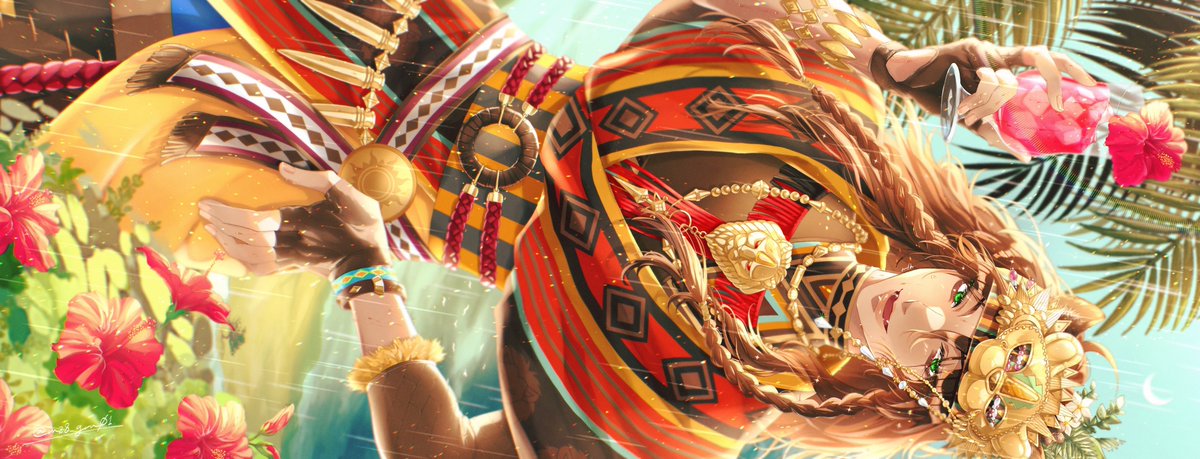 #twst_花言葉企画 #ツイステファンアート ※拡大推奨 〚祈雨の宴〛 𝐿𝑒𝑜𝑛𝑎 𝐾𝑖𝑛𝑔𝑠𝑐ℎ𝑜𝑙𝑎𝑟 -------------------- ✦ハイビスカス(赤) 勇敢┋常に新しい美