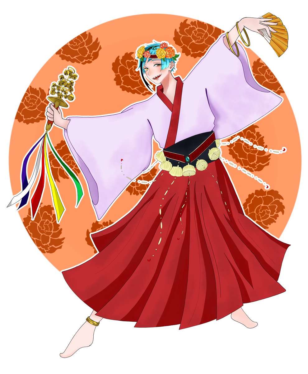 せいれんくんの企画に参加させて頂きました🙏♡🙇♀️ とても楽しかったです!ありがとうございましたーーー✌️💕🫶💗 1枚目全体図 2枚目顔アップ 🦈×天鈿女命(日本最古の踊り子) #twst_NRC生徒神様化企画 #twstファンアート