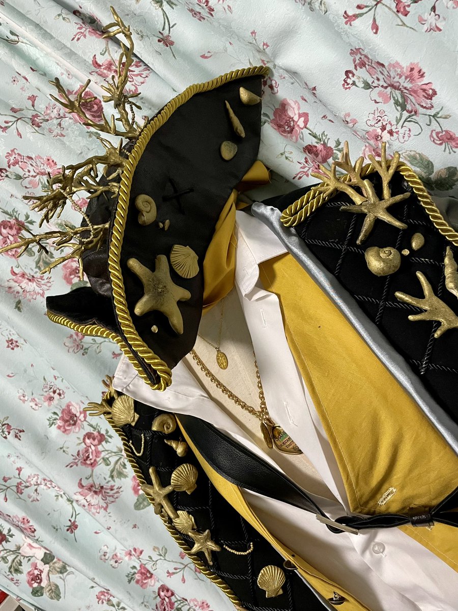 スケアリーモンスターズ🏴☠️🦁完成!! 紙粘土でパーツ作って、でも細い部分は壊れることが分かったからライオンボードで作り直した そして唐突に汚し加工がしたくなって炙ったり墨汁吹きかけたりしてた… 頑張った😭😭😭 #twst_cosplay #twstコスプレ