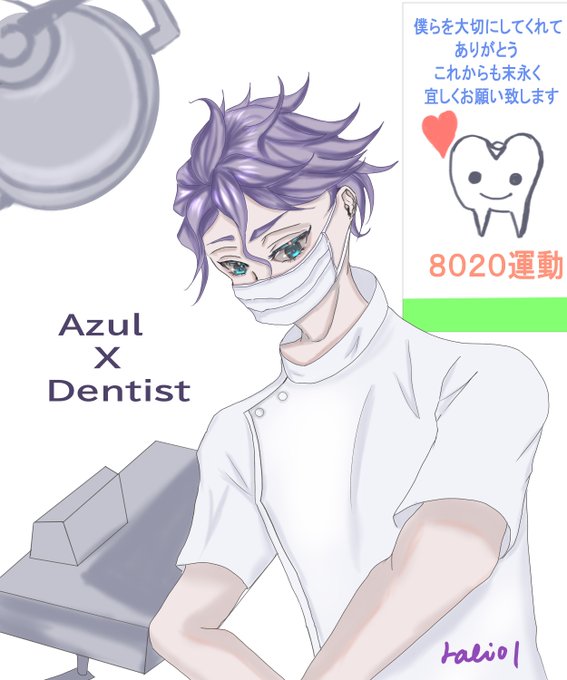 #twst_med企画 2 🐙「お客様、少し虫歯になりかかっていますので、良ければ当院の歯磨き粉を試してはいかがでしょうか。」 まにあった!!背景があまり書き込めなかったけど、美人アズかけて満足☺ これでオクタで6年制医療パロ描けた!!主催者様おつかれさまです!たのしかったよ☺
